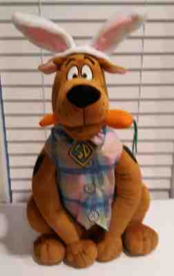 Shipped with USPS Priority Mail. Absolutely adorable 24 inch Scooby Doo with a carrot dressed in Rabbit ears, vest and bowtie for Easter. Very good pre-owned condition. No flaws except ink on tag